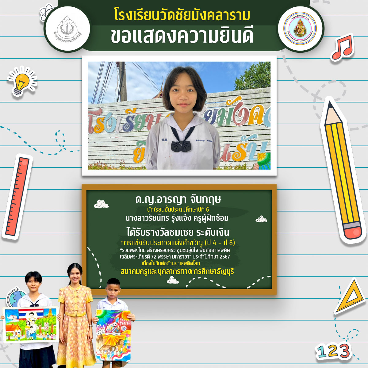 ประกวดแต่งคำขวัญ ป.4 - ป.6 ได้รับรางวัลชมเชย ระดับเงิน