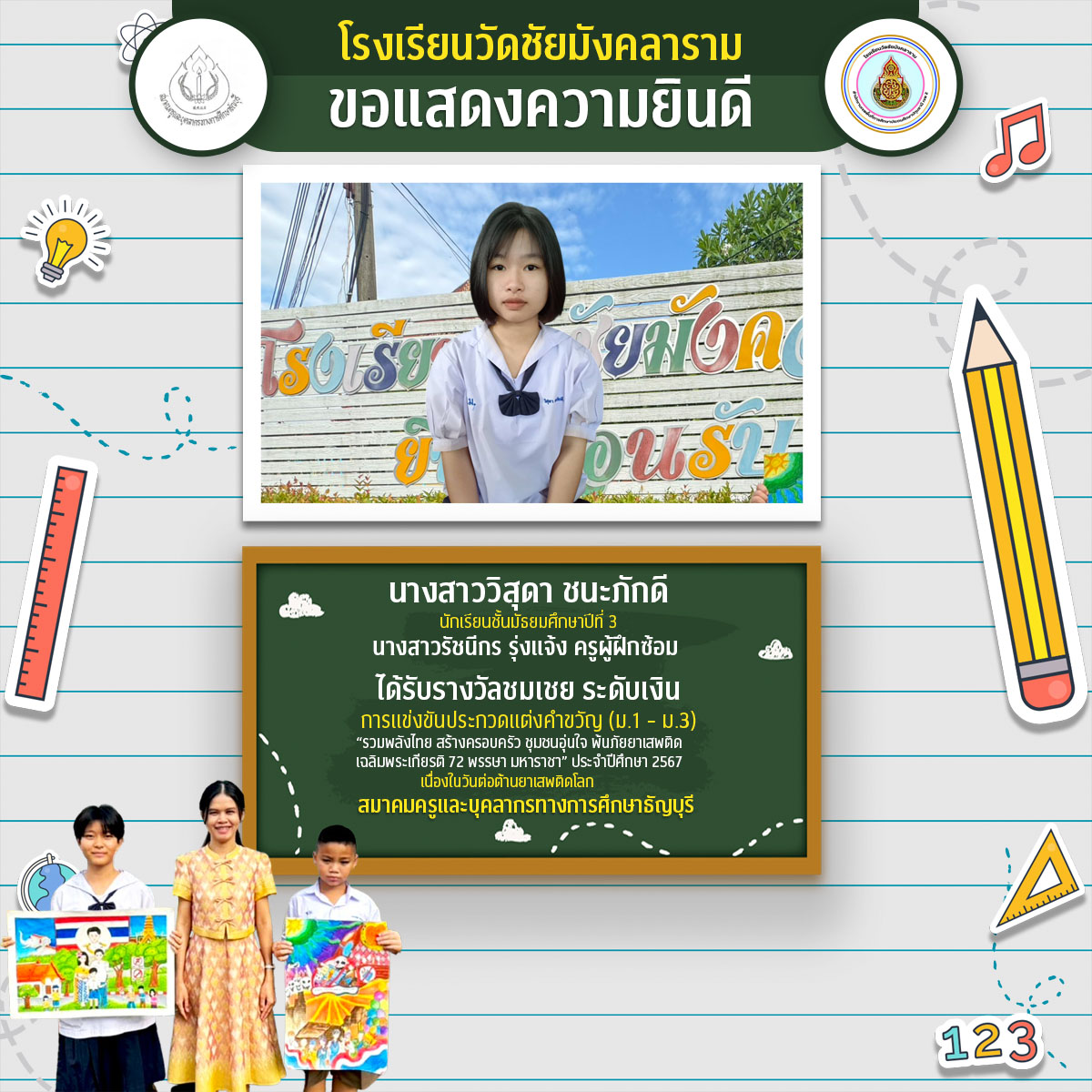 ประกวดแต่งคำขวัญ ม.1-3 ได้รับรางวัลชมเชย ระดับเงิน